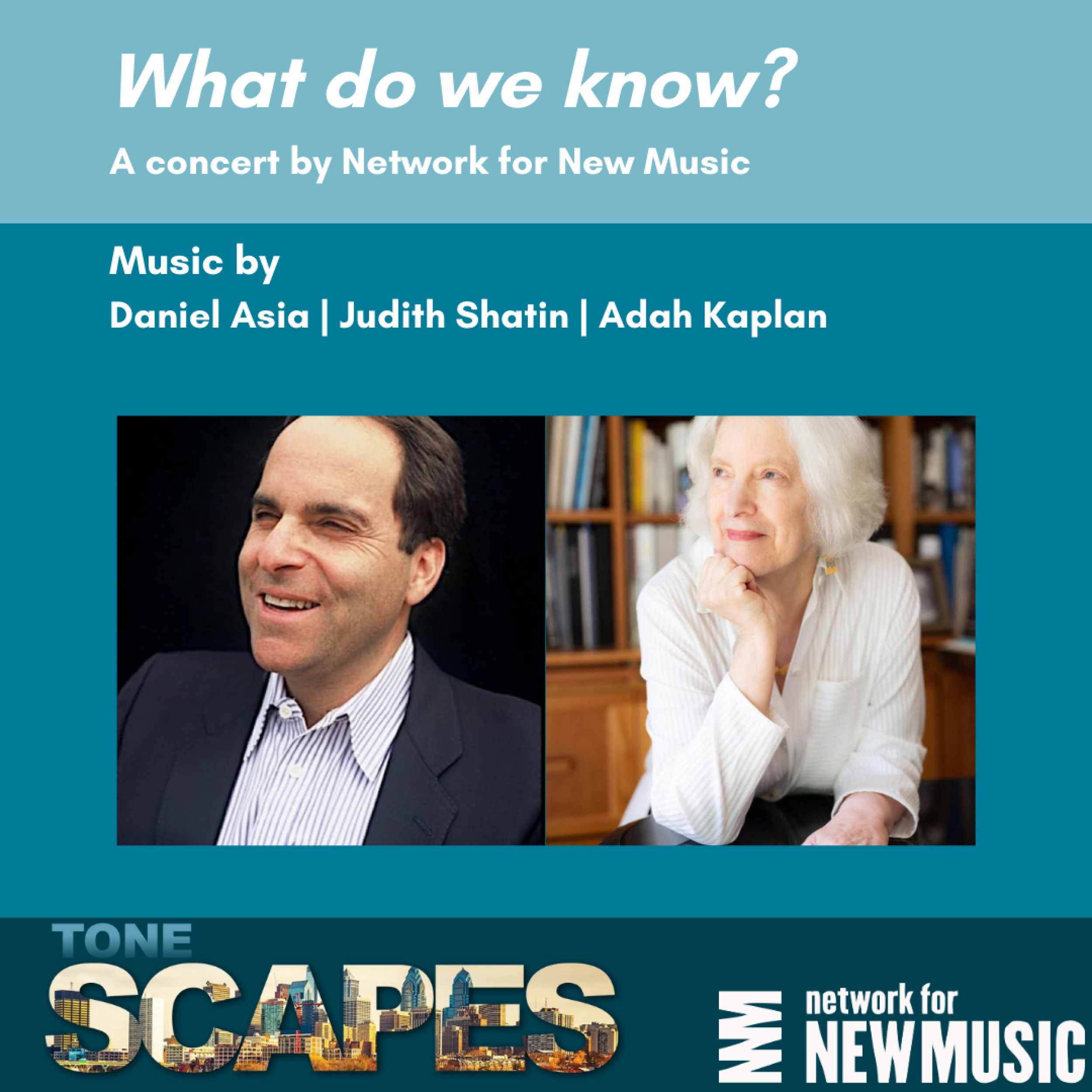 What Do We Know? is a concert centered on exploring the human experience through Jewish texts and music. Headlining the program is Daniel Asia, including his Breath In a Ram’s Horn – for voice, flute, clarinet, violin, cello, and piano, Songs of Transcendence for solo guitar, and Why (?) Jacob for solo piano. In addition, the performance will feature Judith Shatin’s Elijah’s Chariot – for string quartet and electronics and Philadelphia young composer and violinist Adah Kaplan's Sh’veekeen, Sh’veeteen: Forgiven, Eradicated for string trio.