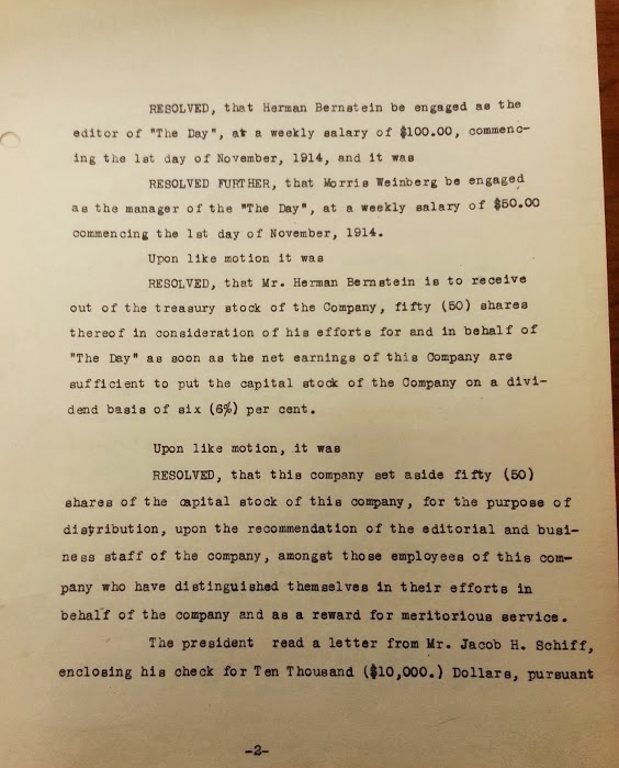 The second page of the minutes of a meeting of the directors of The Day Publishing Company reveals that the Jewish